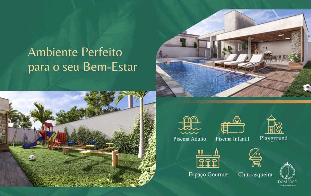 O Condomínio Dom José proporciona segurança, lazer e bem-estar, com fácil acesso a comércios, escolas e serviços essenciais. Ideal para quem busca um ambiente tranquilo, seguro e moderno.